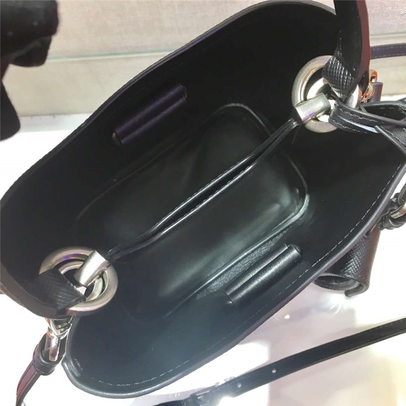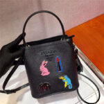 1BA217 Prada女包 Prada Panier 珐琅金属贴花 Saffiano皮革 Prada手袋 黑色