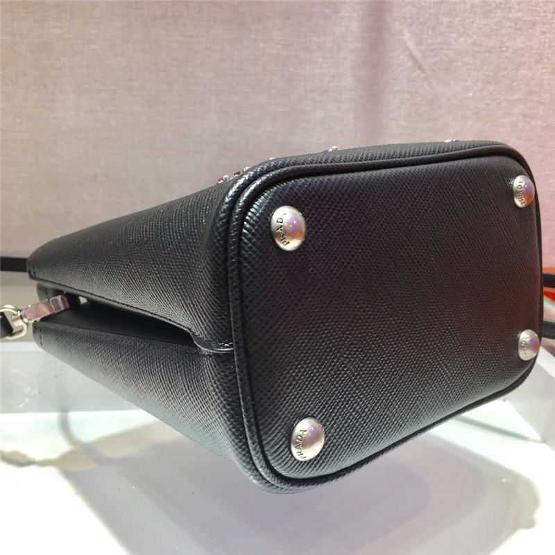 - 1BA217 Prada女包 Prada Panier 珐琅金属贴花 Saffiano皮革 Prada手袋 黑色
