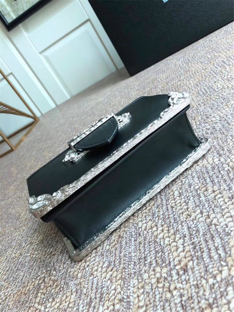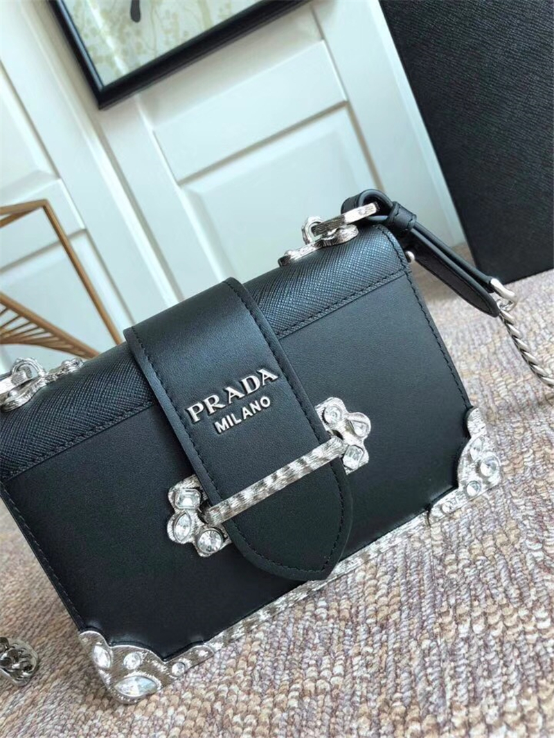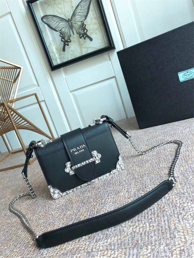 • 1BD018 Prada单肩包 顶级宝石五金 时尚女士休闲包 Prada女包 进口牛皮 黑色