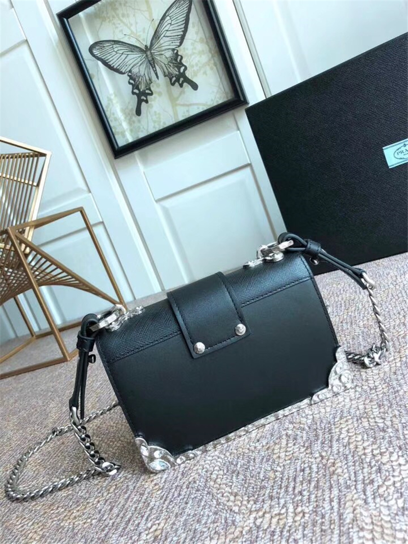 1BD018 Prada单肩包 顶级宝石五金 时尚女士休闲包 Prada女包 进口牛皮 黑色