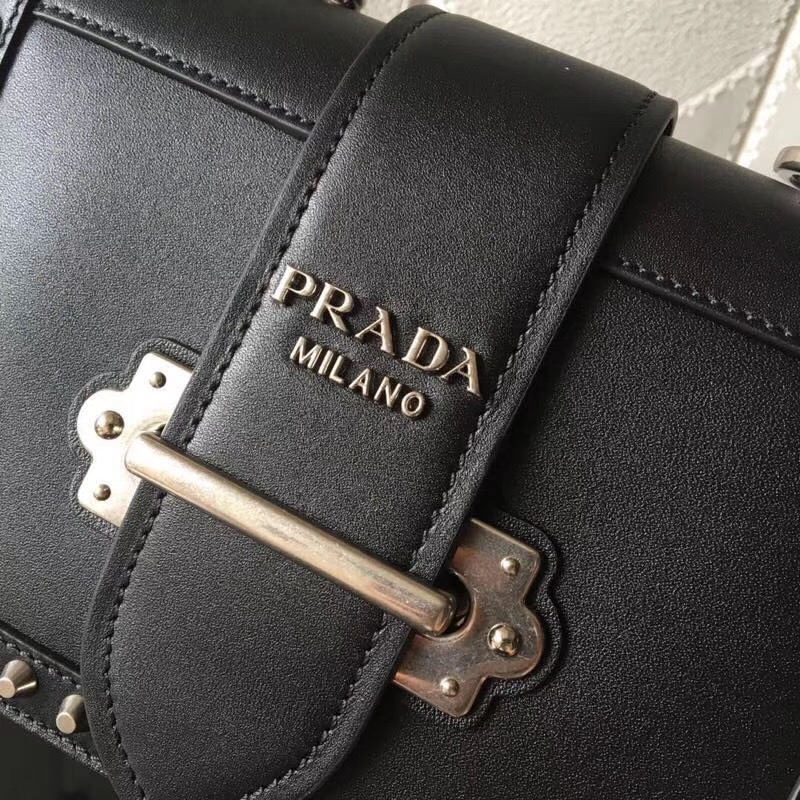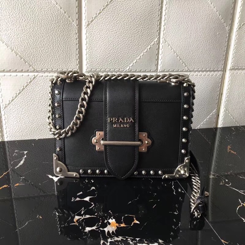1BD045 Prada cahier 升级版新款 铆钉设计 普拉达单肩斜挎包 黑色