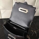 - 结构:皮革衬里,正面系带开合,两个内部夹层和两个内袋,其中一个带翻盖,滑动链条肩带