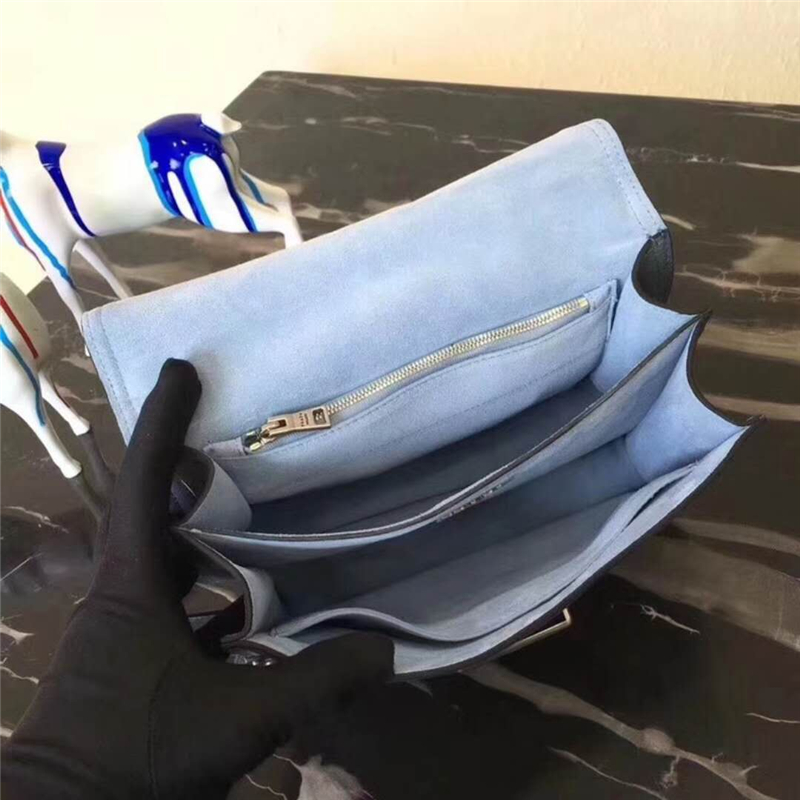 - 详细介绍:Prada Cahier 单肩包采用箱型设计,四角银质硬件如画龙点睛,增添优雅魅力。翻盖和带扣开合与精致的蓝色小山羊皮衬里相得益彰。古银五金配件,复古书设计,独特高档时尚,知性有气质。