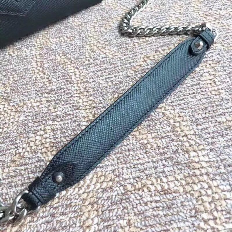 - 1BD127 Prada 皮革手袋 同色徽标 链式肩带 单肩包 黑色