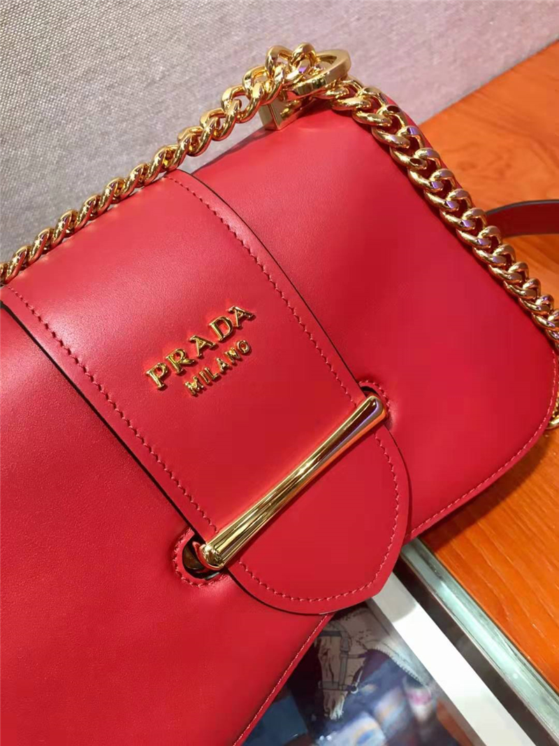1BD184 Prada Sidonie女包 普拉达手袋 小牛皮 普拉达链条包 红色