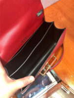- 结构:软羊革衬里,翻盖扣合,皮革饰带,带金属挂钩,一个内袋,金属链条肩带,带皮革肩垫
