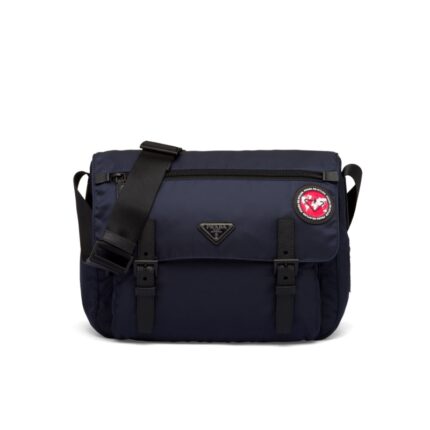 - 结构:ECONYL®再生尼龙和Saffiano皮革材质可调式织物肩带Prada再生尼龙涂胶织物贴饰翻盖和带扣正面拉链袋正面翻盖口袋两个内袋ECONYL®再生尼龙衬里三角形金属徽标