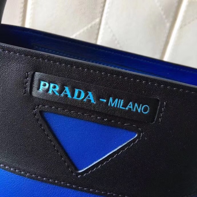 - 1BE015 Prada Ouverture女包 软牛皮 普拉达手提包 Prada皮革水桶包 黑拼蓝