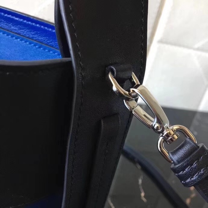 1BE015 Prada Ouverture女包 软牛皮 普拉达手提包 Prada皮革水桶包 黑拼蓝