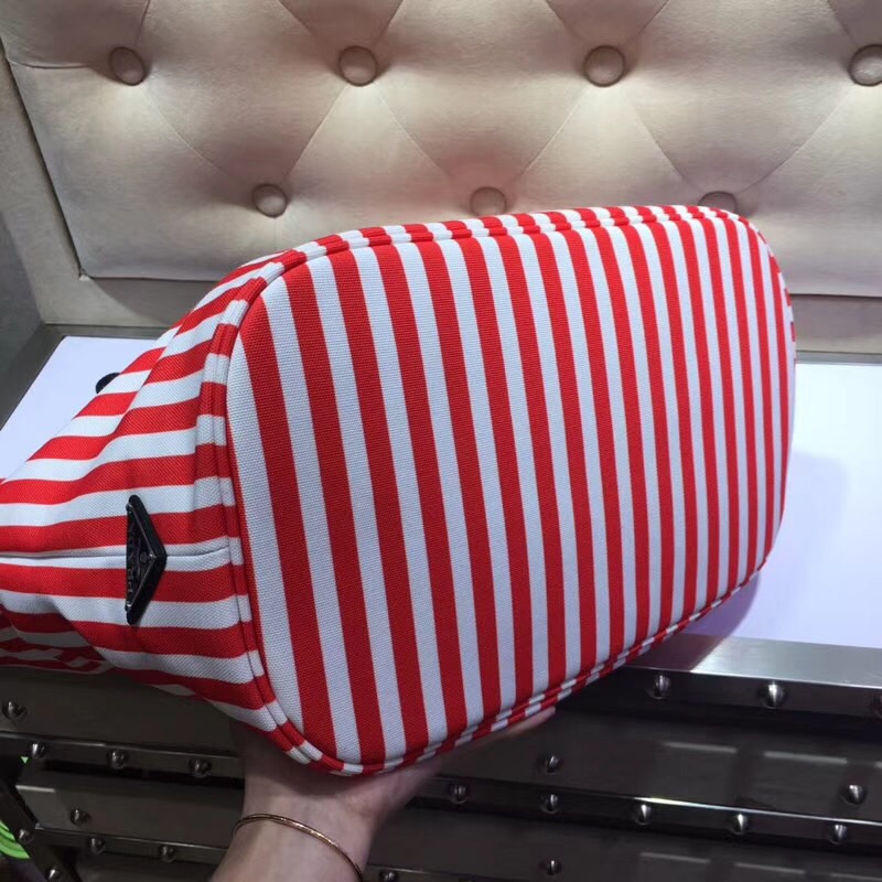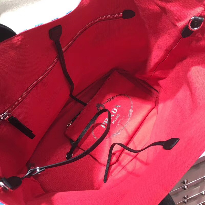 - 1BG161 Prada女包 普拉达购物袋 专柜同步 丝印拼图 红白色