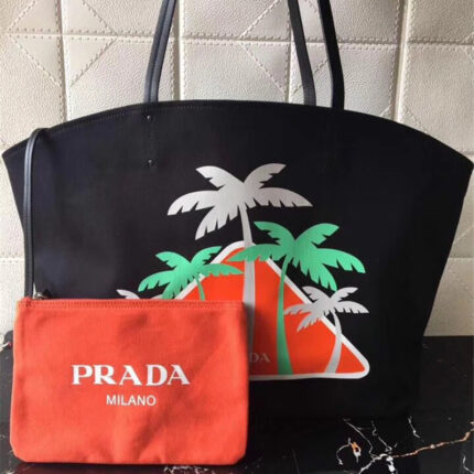 1BG218 Prada女包 普拉达购物袋 Prada帆布包 普拉达包包 黑色
