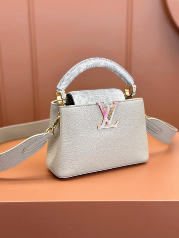 • 详细介绍:新款,1BH082浅灰色,采用进口鹿皮纹,镀金顶级五金,可拆卸彩色织物肩带和皮革肩带,可有两条肩带哦,两个拉链隔层,时尚、显得格外高大尚