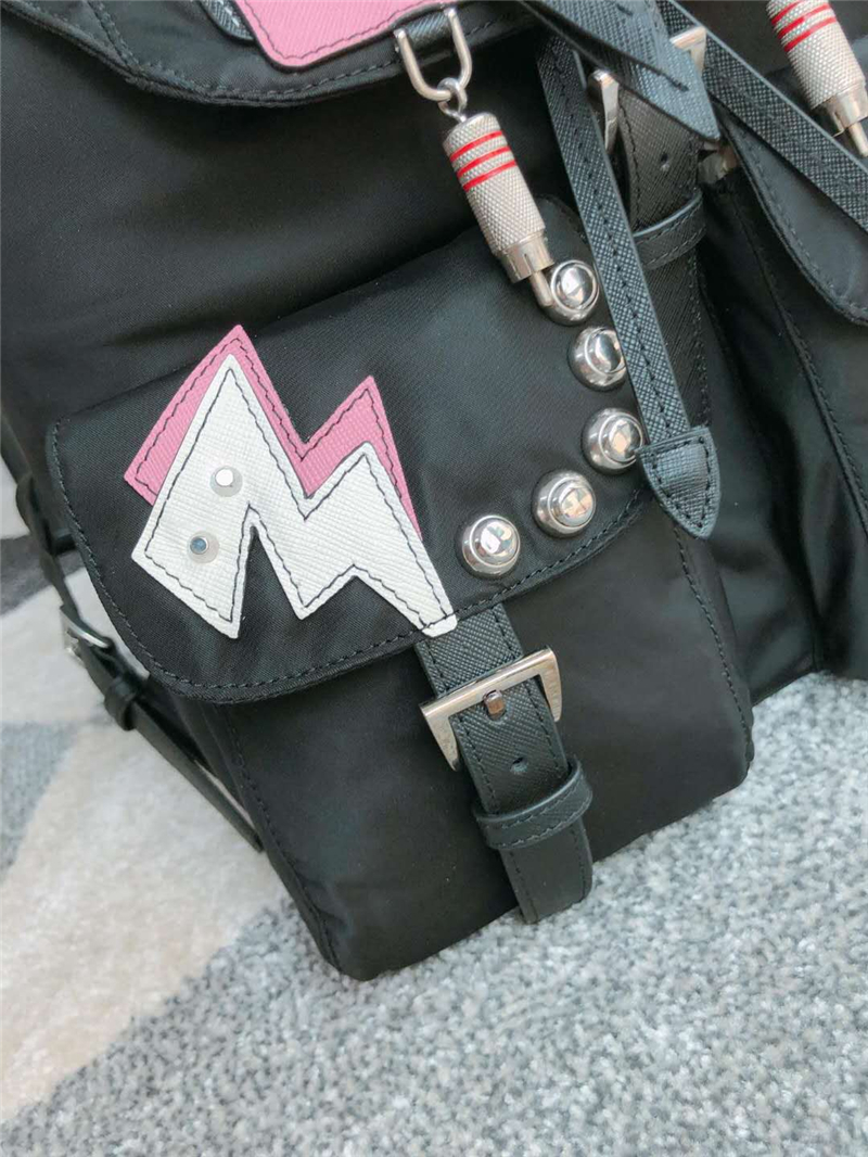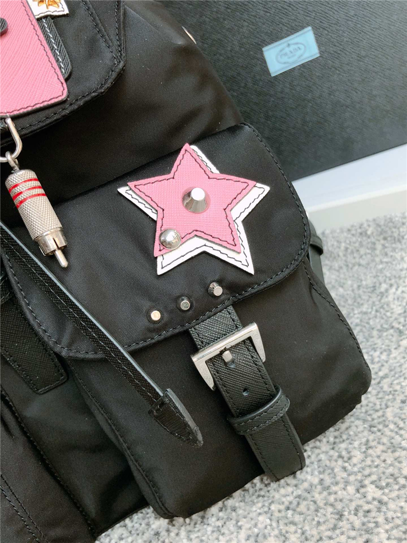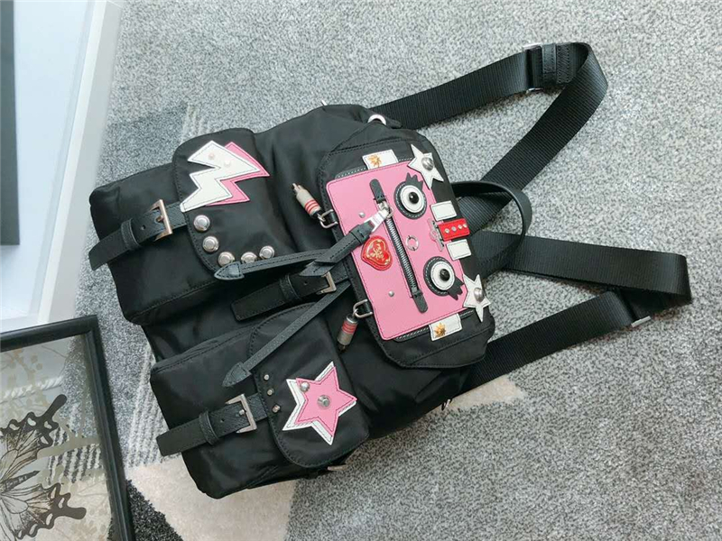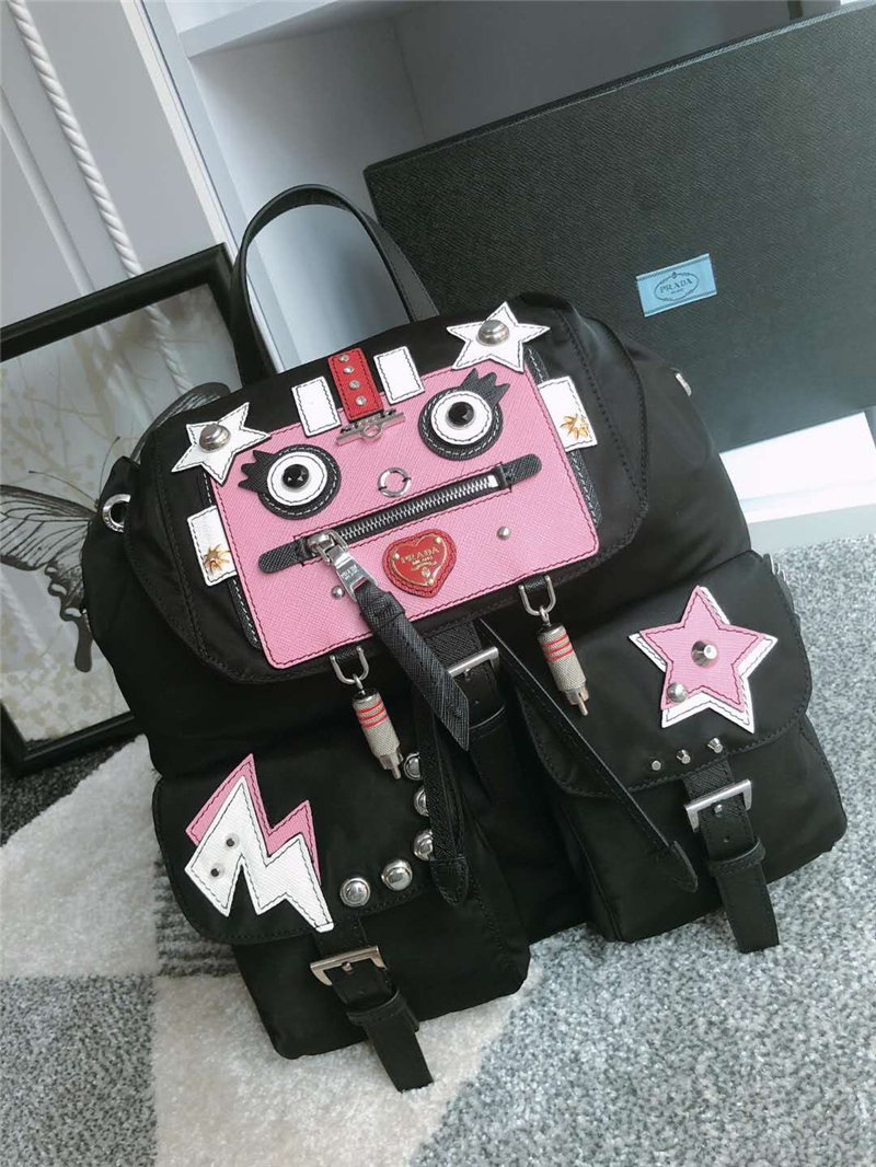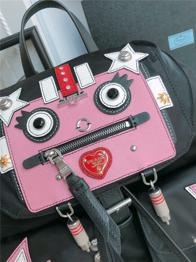 - 1BZ2811 Prada背包 Prada双肩包 尼龙配牛皮 公仔图案 普拉达双肩包 黑色
