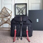 1BZ2811 Prada Black Nylon背包 柳钉扣带 尼龙配牛皮 双肩包 黑配红