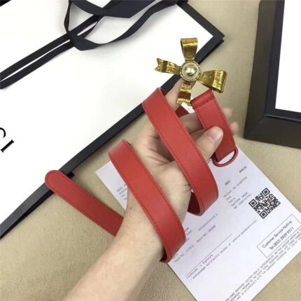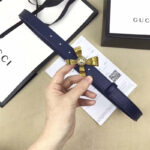 - 2008114899 Gucci 2017年新款 牛皮 金属蝴蝶结饰钉 双G带扣 女式皮带 蓝色
