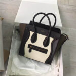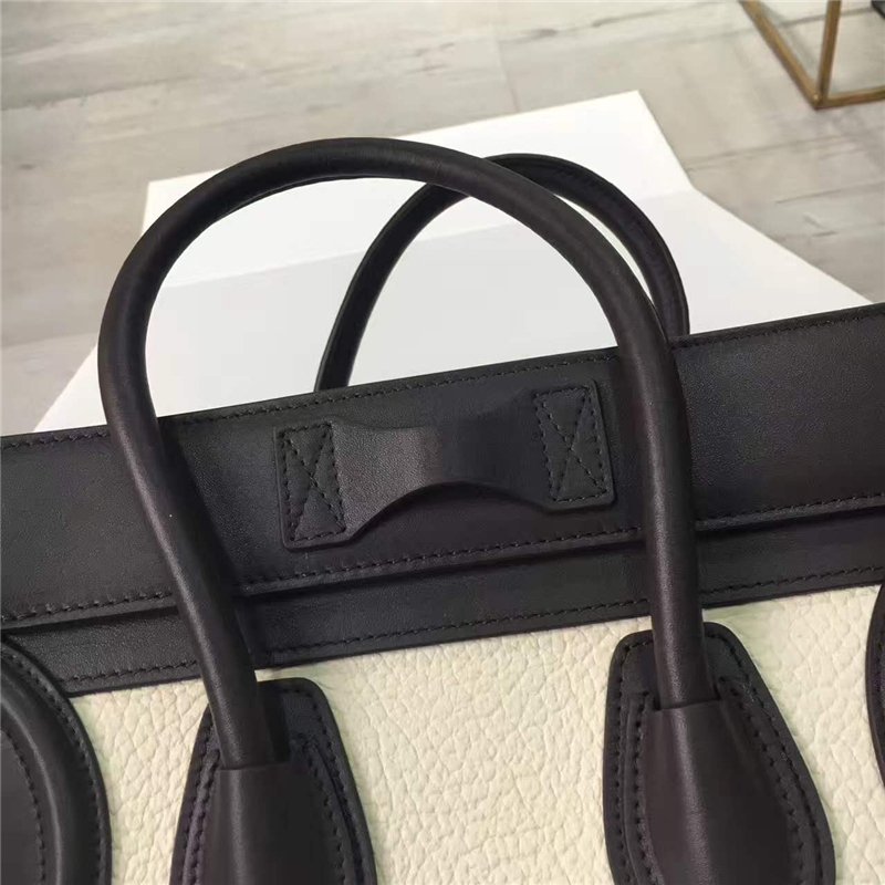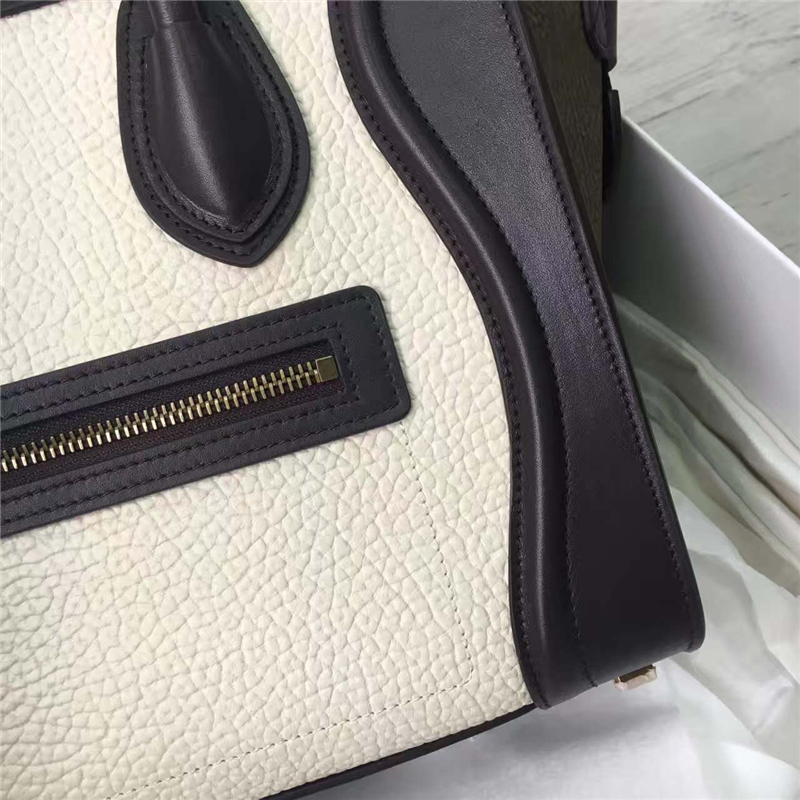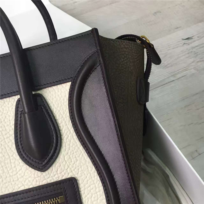 2017赛琳 celine笑脸包�辶嘲� 头层牛皮 三色拼接 翅膀手提包 牛津白深啡绿棕