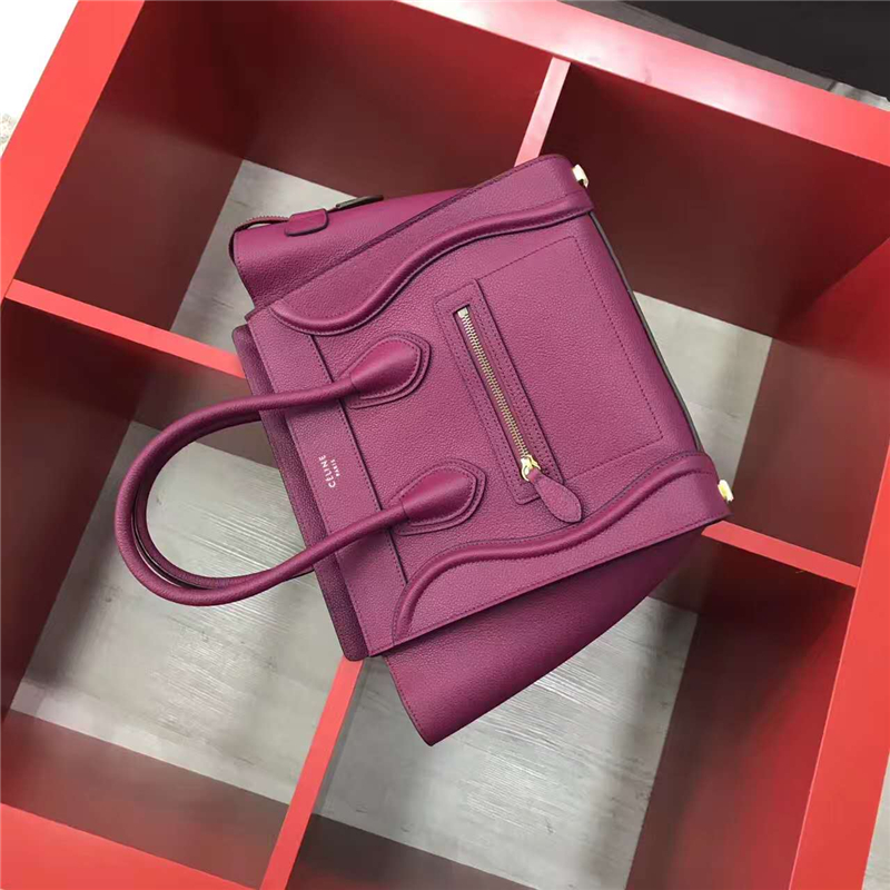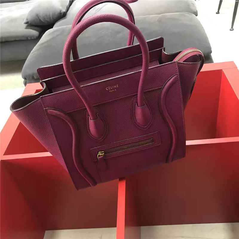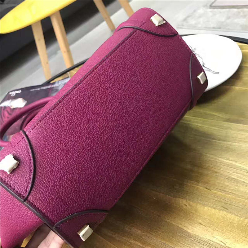 2017赛琳 celine笑脸包 �辶嘲�真皮女包 头层牛皮 翅膀手提包 玫红色