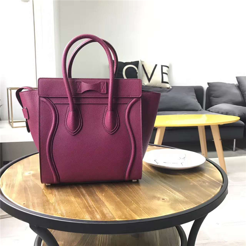 - 2017赛琳 celine笑脸包 囧脸包真皮女包 头层牛皮 翅膀手提包 玫红色