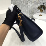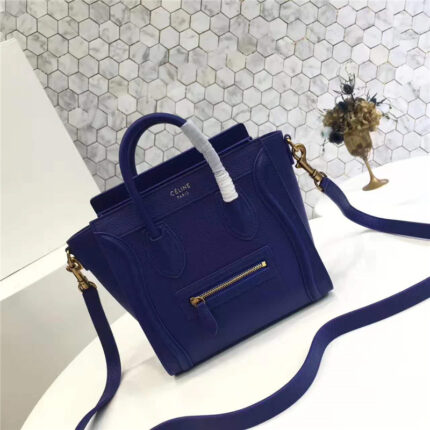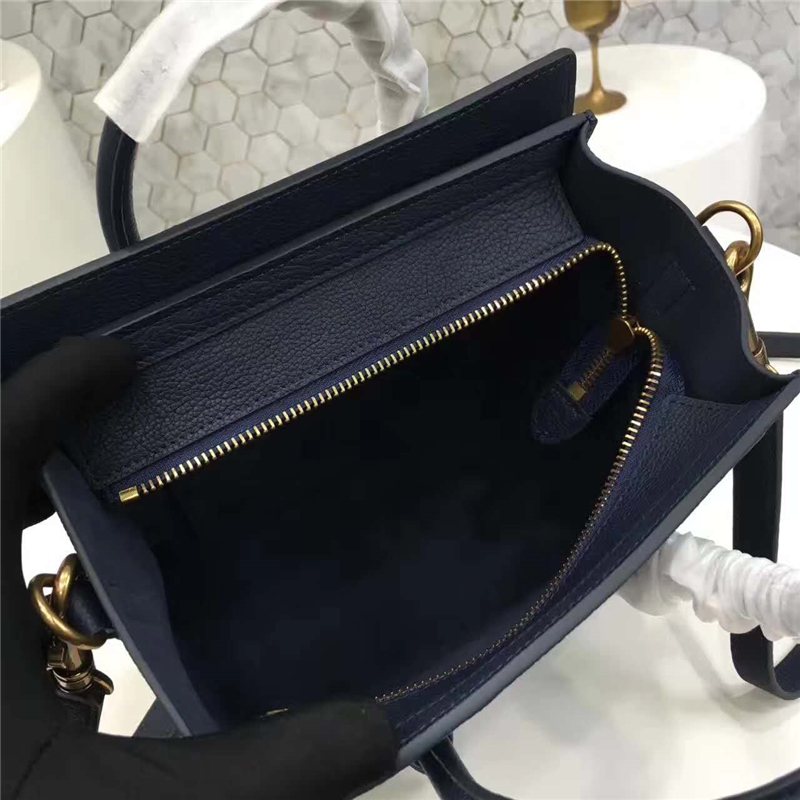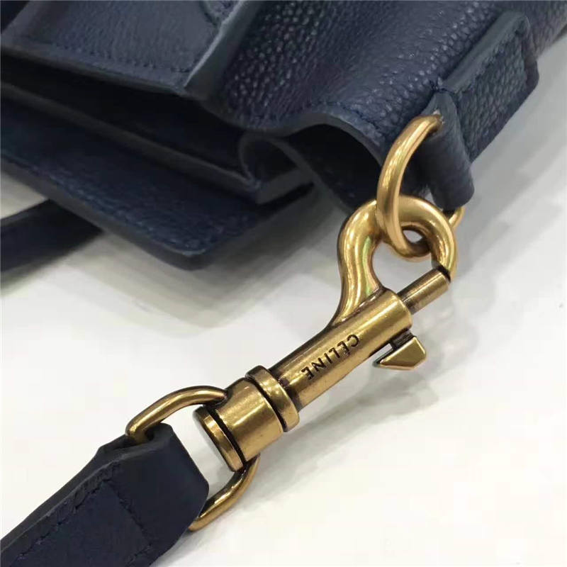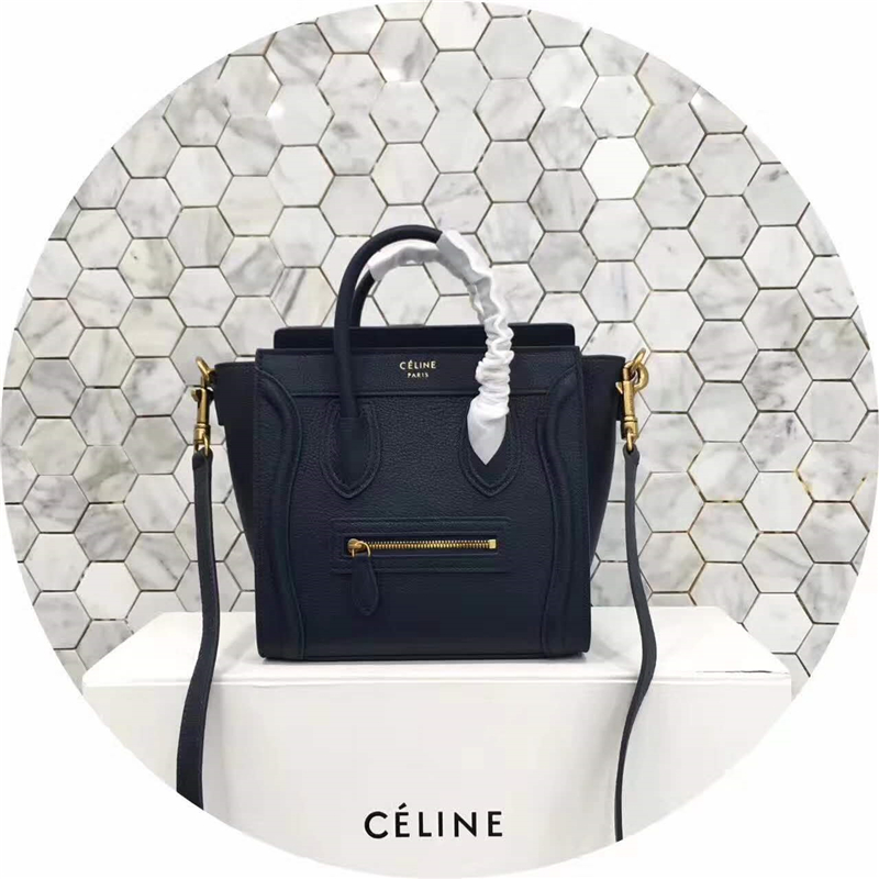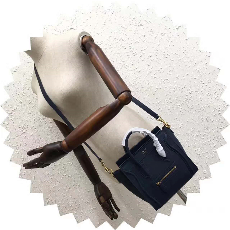 2017赛琳 celine笑脸包 �辶嘲�真皮 中号 头层牛皮 翅膀手提包 藏蓝色