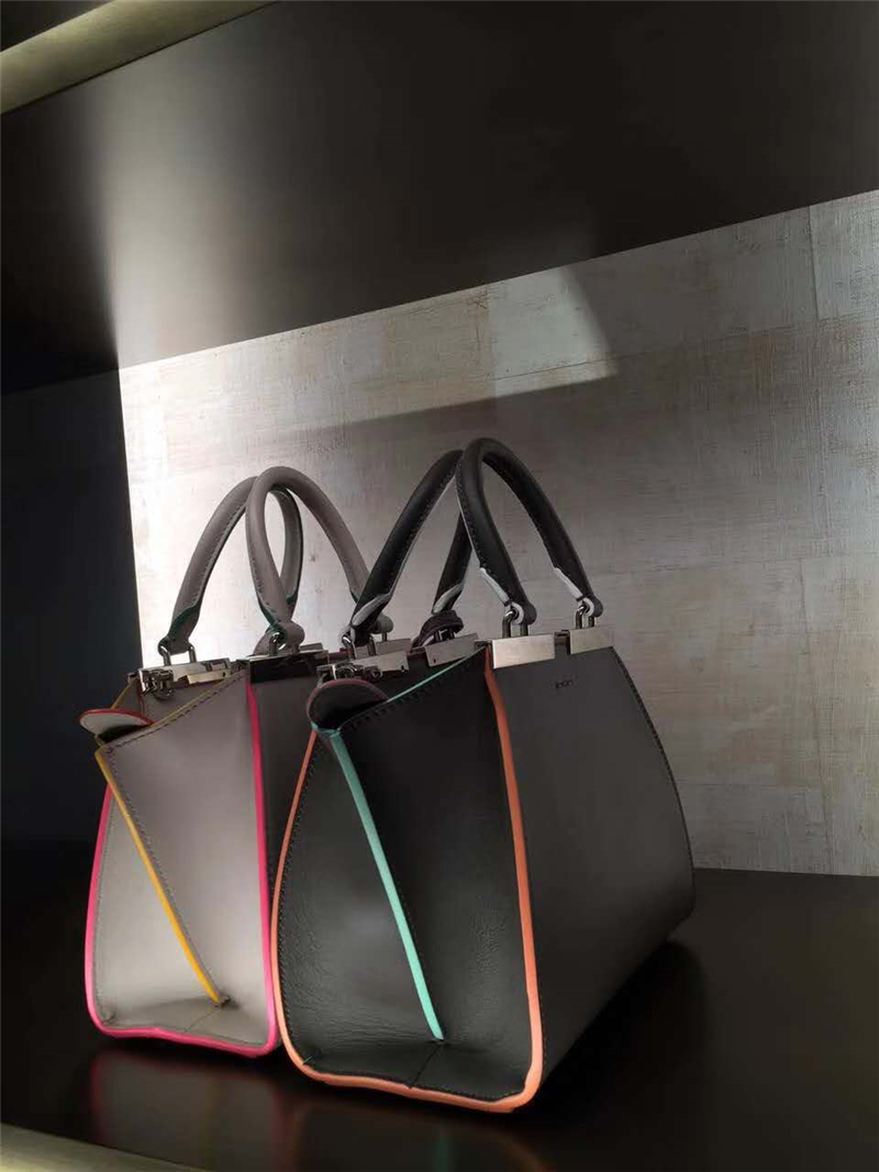 - 详细介绍:FENDI 迷你柔软小牛皮购物包,彩色毛边装饰。亚光碳色珐琅装饰条,镀钯轮廓和金属配件。顶部拉链。软羊革衬里,附大拉链袋。手工缝制扣孔条和FENDI ROMA标志。