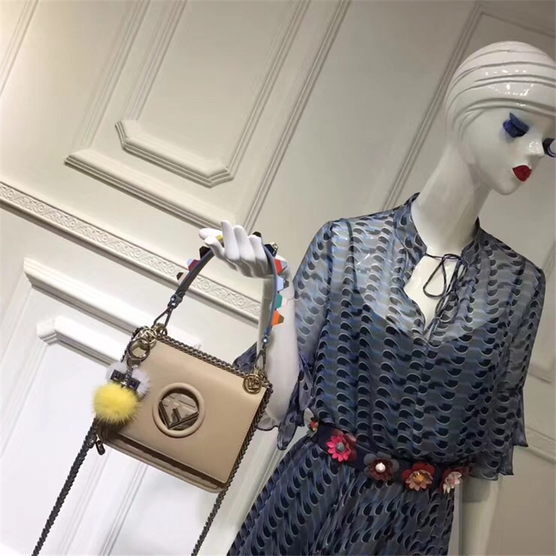- 详细介绍:FENDI 2818 KAN I手袋,饰以最新FENDI F LOGO,内部接裆设计,设有一个口袋。配以可拆卸肩带,可斜背或手拿,以压印经典双F图案。
