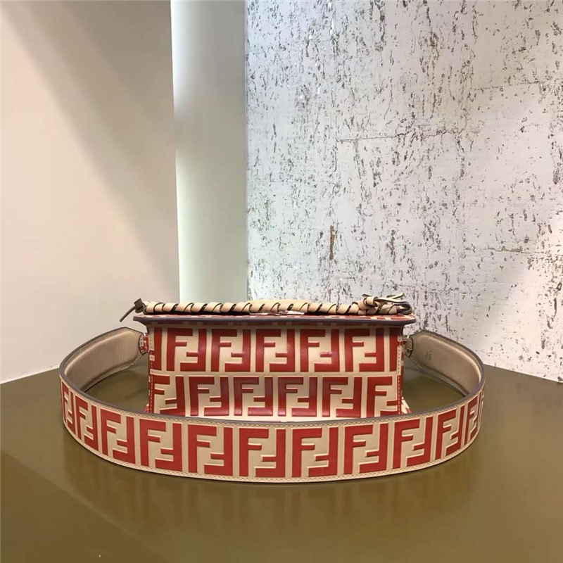 2821 Fendi 编织装饰穿绳 双F凸纹印花标志 翻盖手袋 红色