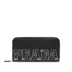- 2ML317 Prada普拉达 Prada徽标字母嵌花 拉链长款钱包 黑白印花