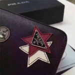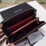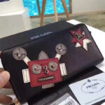 - 2ML506 Prada普拉达 机器人 十字纹牛皮 拉链长款 钱夹 黑配红