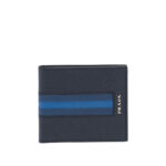 - 2MO513 Prada普拉达 Saffiano皮革 配对比色嵌花 双折短钱夹 海蓝色