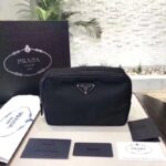 2NA006 Prada新款 防水尼龙面料配牛皮 普拉达手拿包 化妆包 黑色