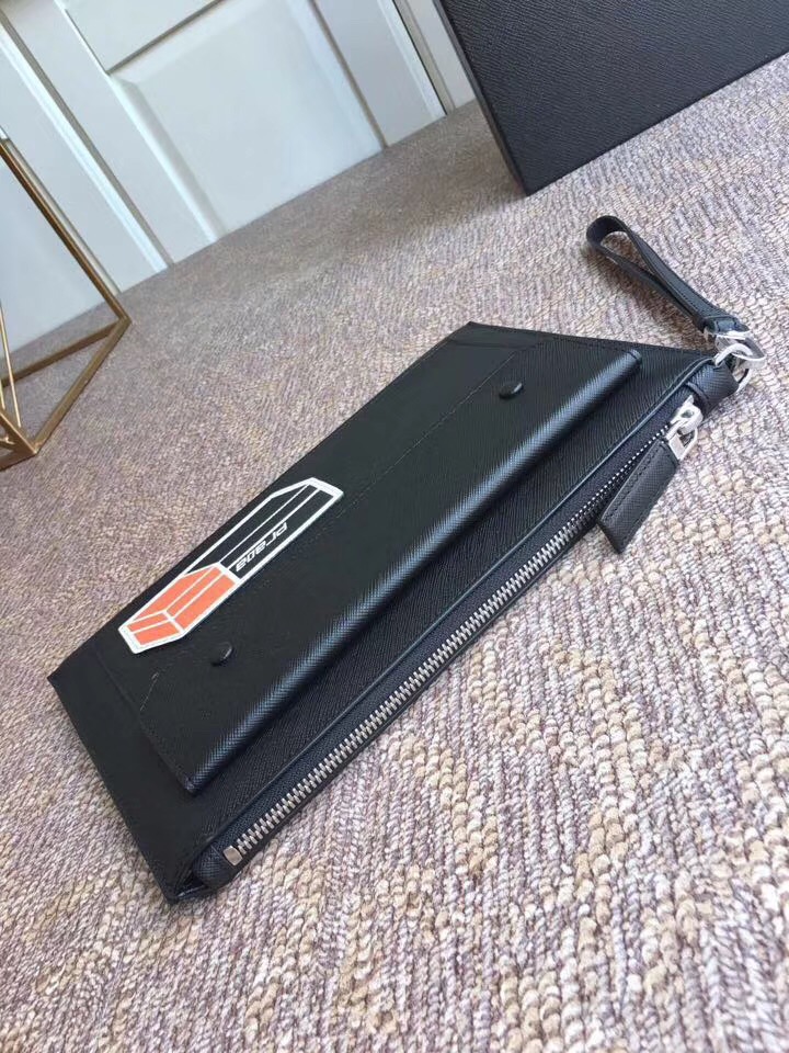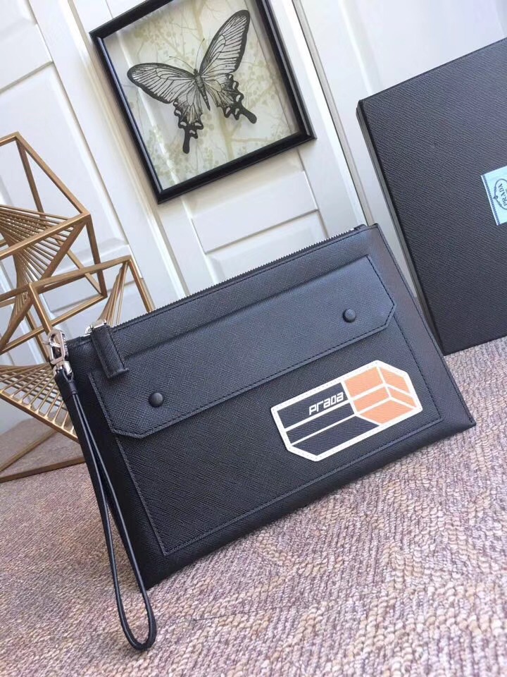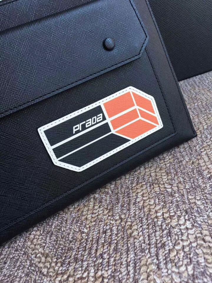 2NG005 Prada普拉达 Saffiano皮革 十字纹牛皮 手拿包 黑色