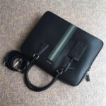 - 结构:里外全皮,带对比色嵌花装饰,双圆手柄,一个iPad保护袋,两个智能手机袋,一个拉链袋,姓名牌,可拆式调节皮质肩带