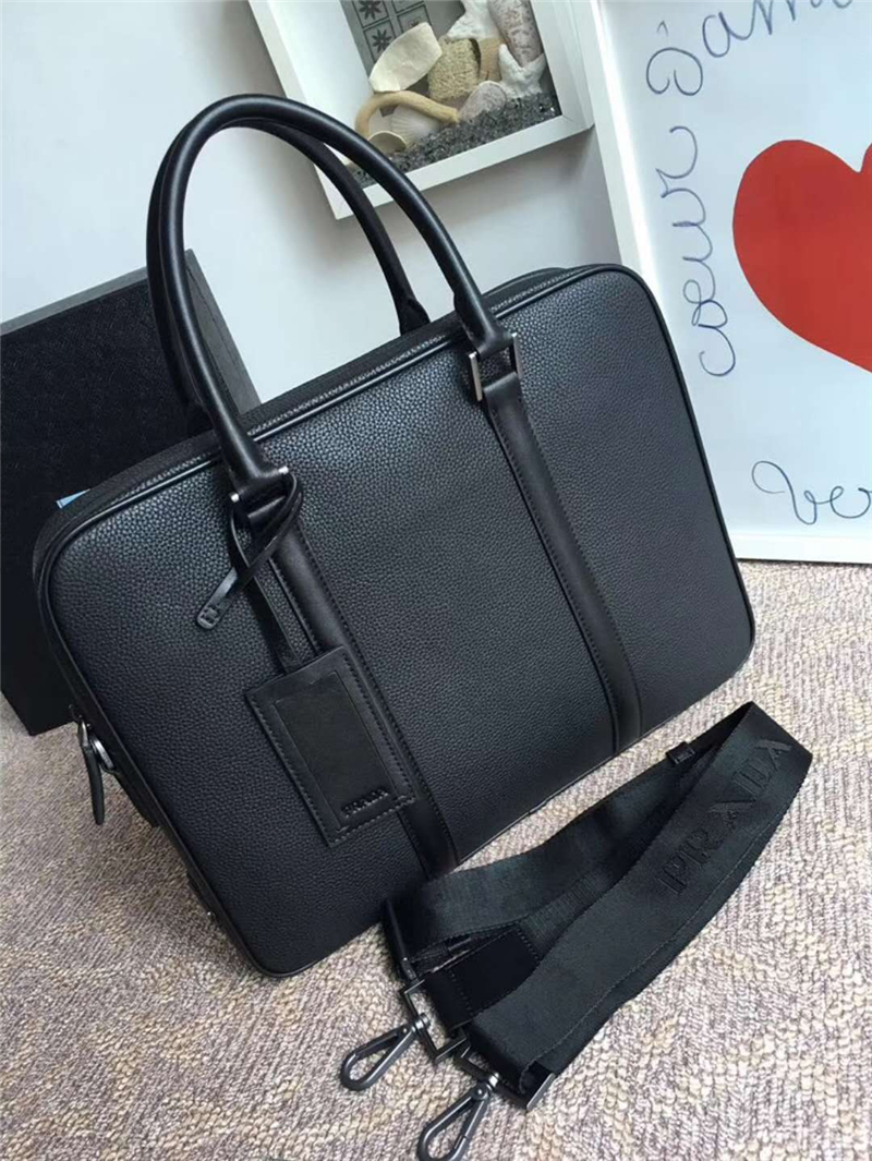 2VE363 Prada普拉达 粒纹牛皮 手提包男士 公文包 黑色