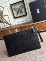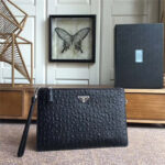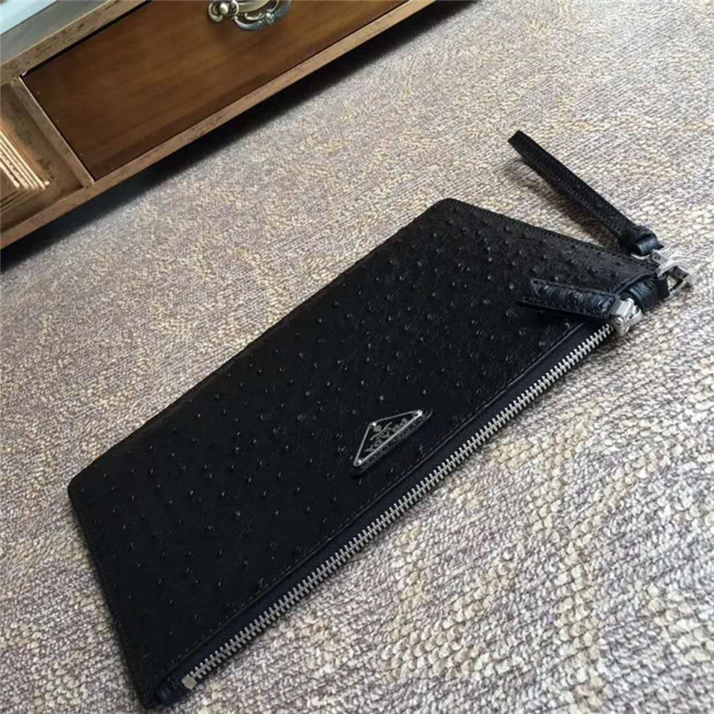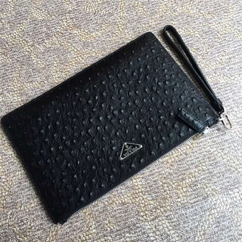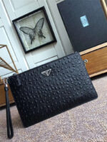 - 2VF006 Prada普拉达 鸵鸟纹牛皮 拉链 立体手拿包 黑色 角唛