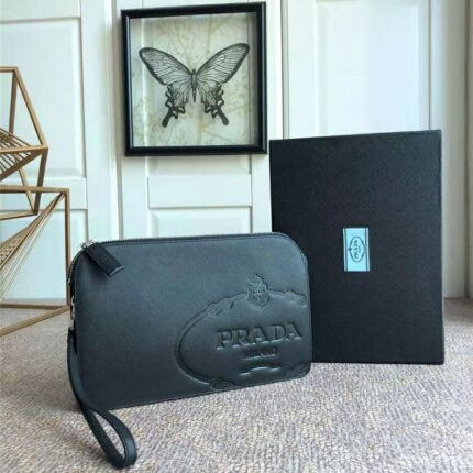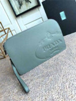 - 2VF056 Prada男款手包 Saffiano十字纹牛皮 丝印徽标 普拉达手拿包 青灰色