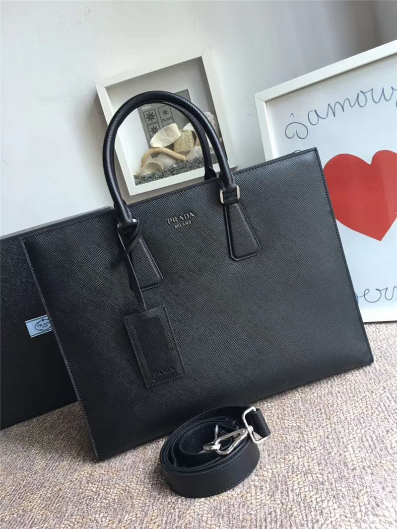 - 2VG011 Prada普拉达男包 Prada男士公文包 普拉达十字纹手提肩背包 黑色
