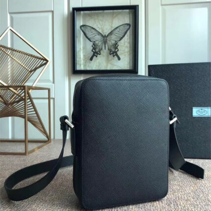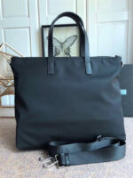 - 结构:Saffiano皮革双提手,抛光钢质配件和黑钛拉链,两个口袋(包括一个拉链袋),以及两个与内部缝合的皮革口袋,可拆卸可调式尼龙肩带