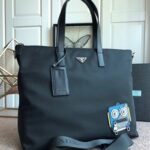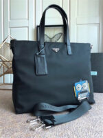 - 2VG024 Prada普拉达男包 皮革双手柄 彩色机器人图案 尼龙手提包 黑色