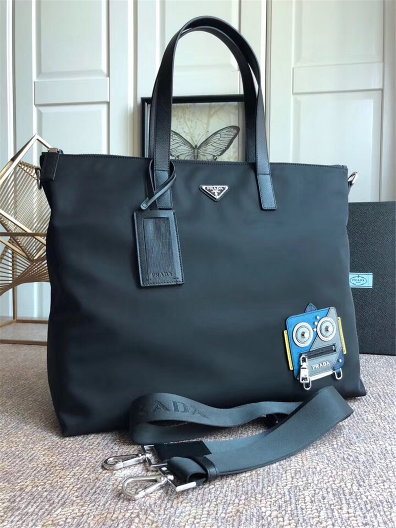 2VG024 Prada普拉达男包 皮革双手柄 彩色机器人图案 尼龙手提包 黑色