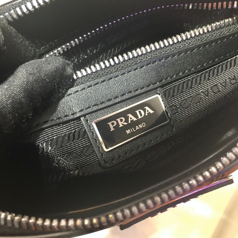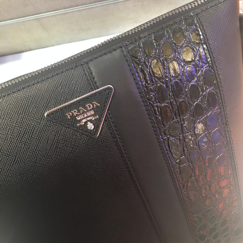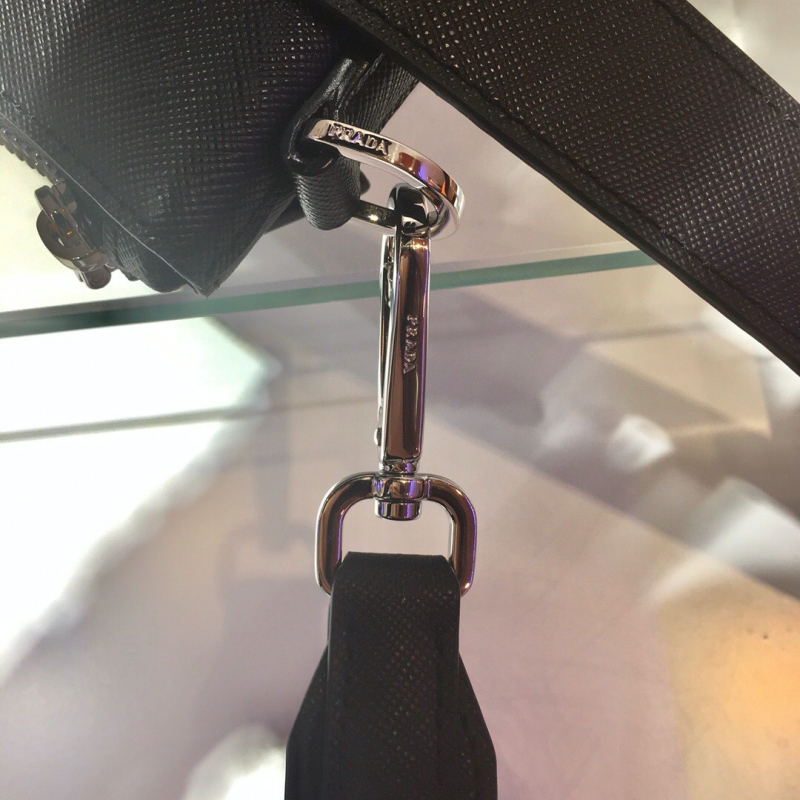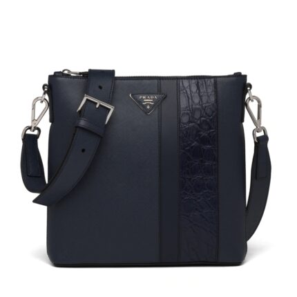 - 结构:Saffiano皮革材质鳄鱼纹饰边金属配件可调式皮革肩带主隔层配拉链包身内部拉链袋Prada徽标衬里内部徽标铭牌正面外部三角形徽标