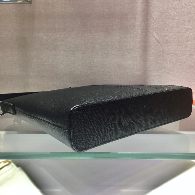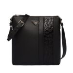2VH089 Prada普拉达 Saffiano 斜挎包 鳄鱼纹饰边邮差包 黑色