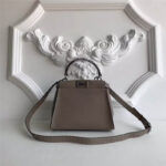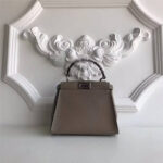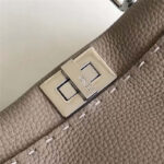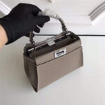 - 3106S FENDI芬迪 MINI SELLERIA饰牌 荔枝皮手提包 灰褐色