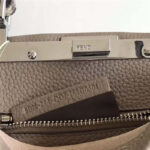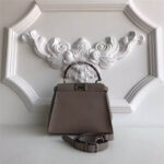 3106S FENDI芬迪 MINI SELLERIA饰牌 荔枝皮手提包 灰褐色