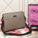 311003 Gucci 经典双G花纹 双层双拉链 单肩斜挎包 啡色