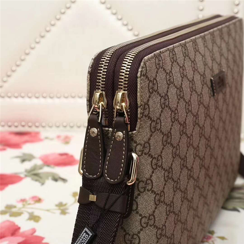 - 详细介绍:男士福利!Gucci 经典双G花纹 双层双拉链 单肩斜挎包采用标志性 GG Supreme高级人造革精制而成,纹路清晰,一流手工制作,走线均匀,双层双拉链玉米齿,选用进口优质五金,高密度电镀,极难褪色,使您送礼体面过人。