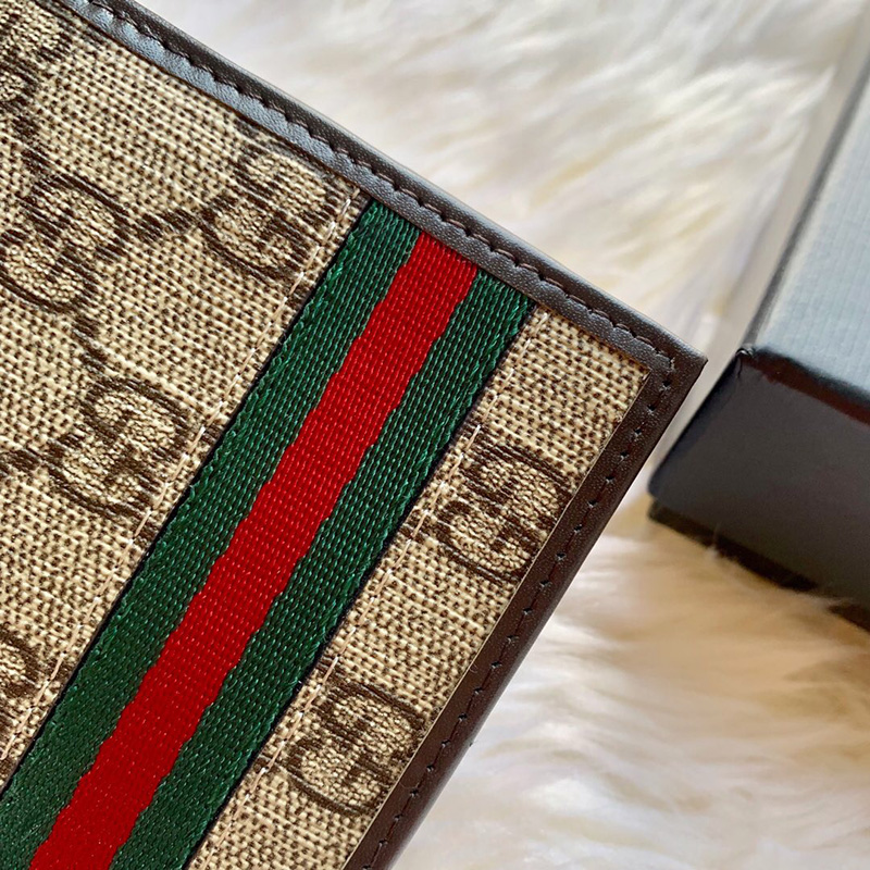 - 365491 Guccissima 经典款棕色双G配皮红绿织带短款钱包 卡其色
