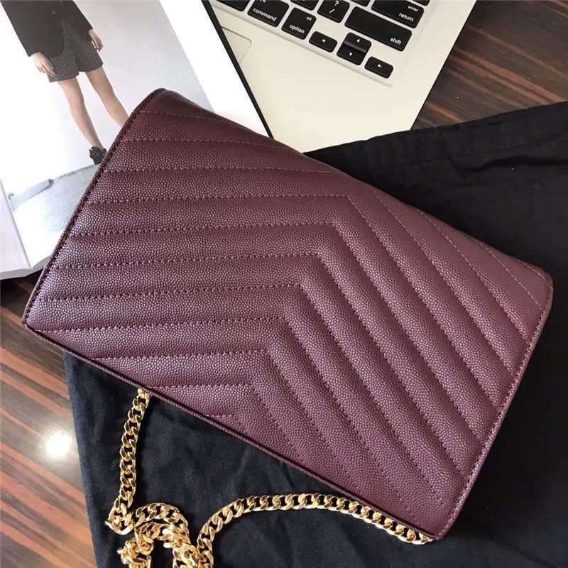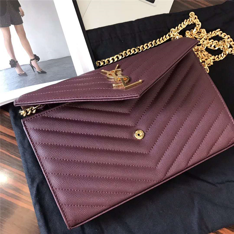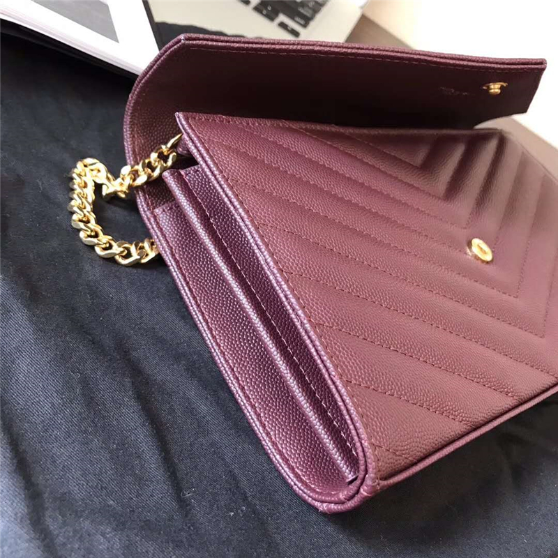 - 377828 YSL女包 进口鱼子酱皮 圣罗兰女袋 真皮链式皮夹 紫色