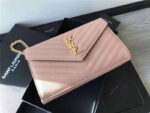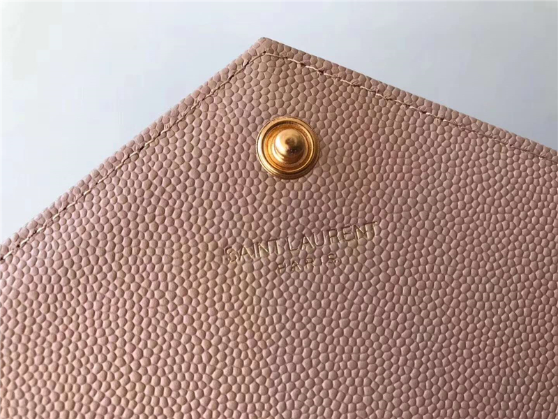 - 377828 YSL 进口鱼子酱皮 圣罗兰 真皮链式皮夹 藕粉