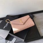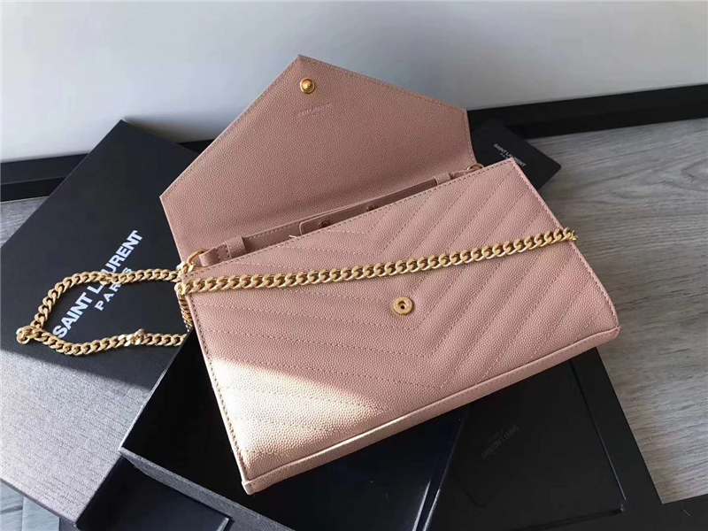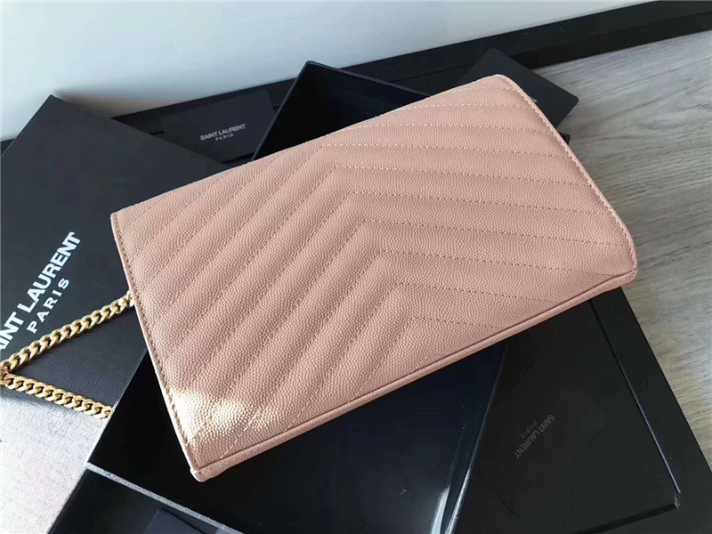 377828 YSL 进口鱼子酱皮 圣罗兰 真皮链式皮夹 藕粉
