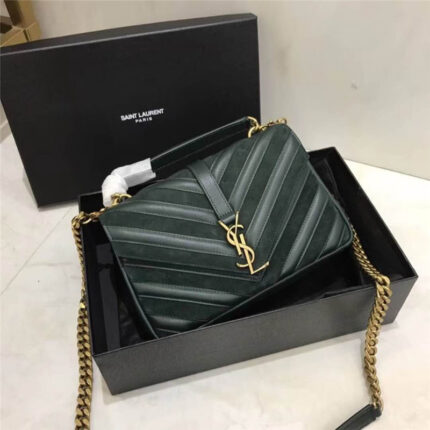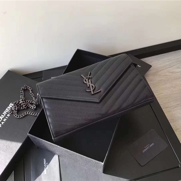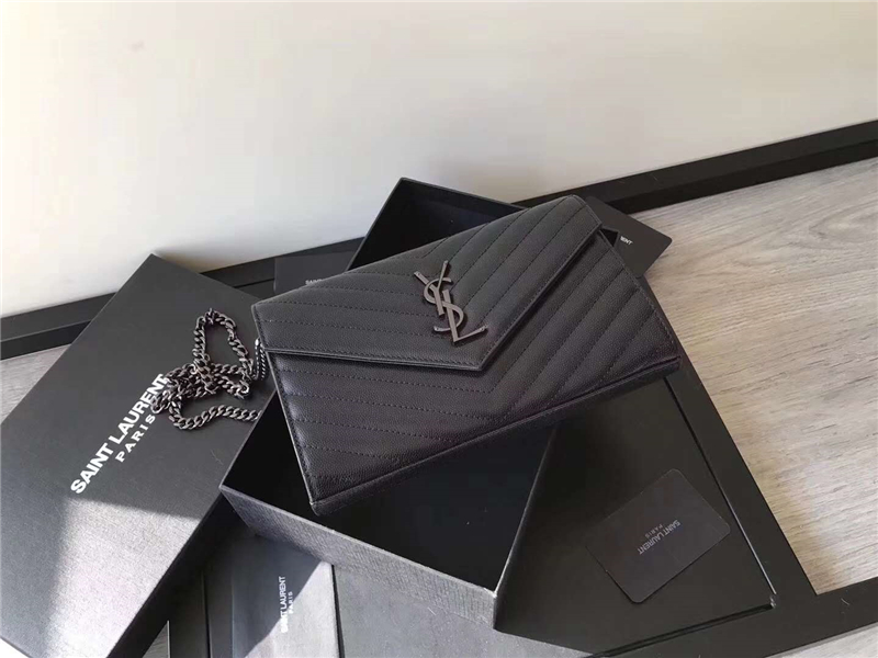 - 结构:前包盖子母扣开合,三个内部隔层,YSL标志搭扣,可拆卸皮革金属链